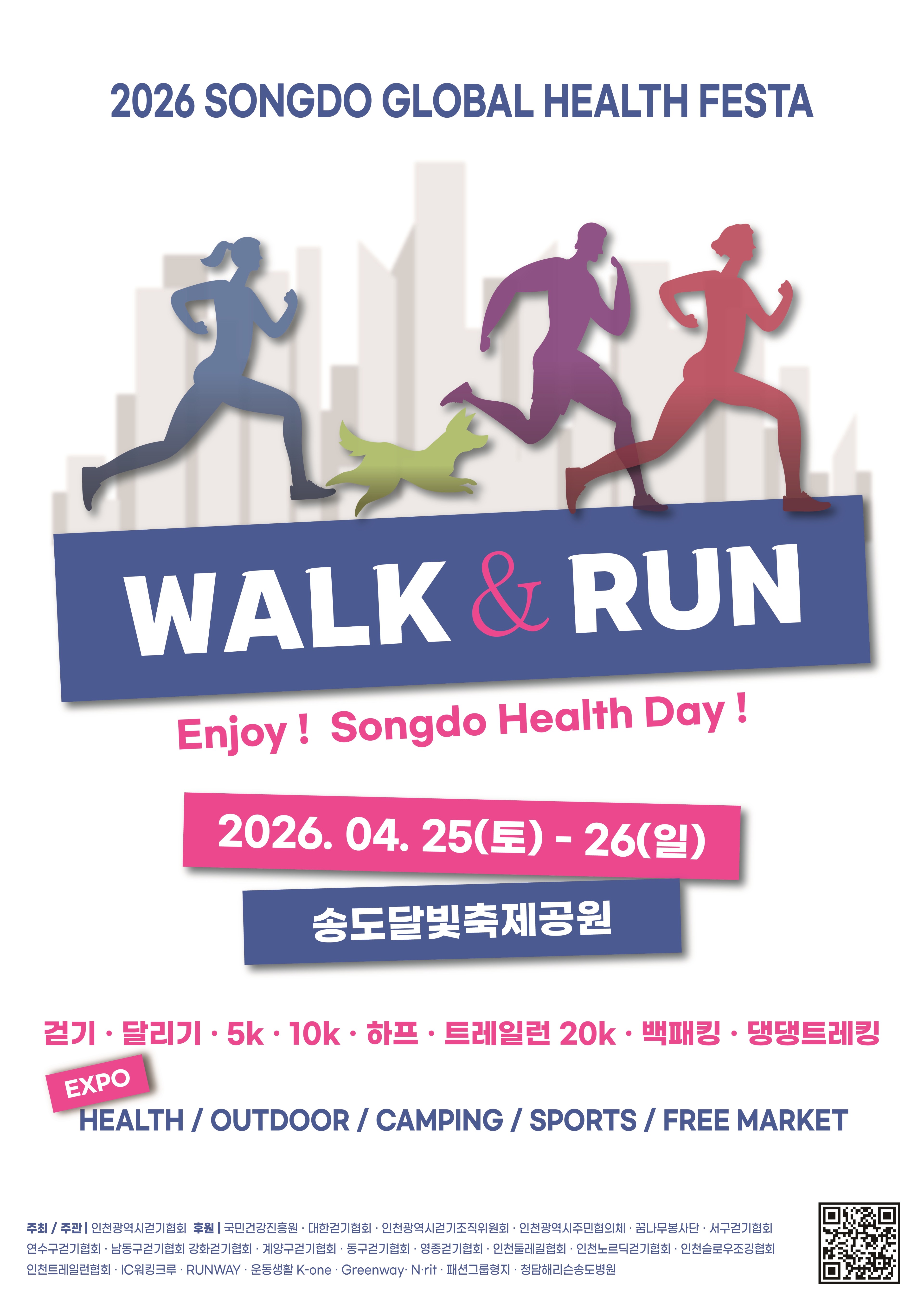 출처 : 인천광역시 걷기 협회 블로그매년 수많은 러너와 시민들의 가슴을 뛰게 하는 '2026 송도 워크앤런(Walk & Run)'이 올해도 화려한 막을 올립니다. 아름다운 송도국제도시의 센트럴파크와 탁 트인 해안도로를 배경으로 걷고 달리는 이번 대회는, 건강과 추억을 동시에 챙길 수 있는 상반기 최고의 축제입니다. 핵심 정보인 접수 기간과 참가비부터 코스 분석, 그리고 주차 정보까지 완벽하게 정리해 드립니다.